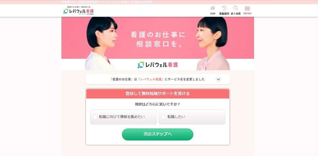 レバウェル看護は、看護師求人数国内トップクラスの転職サイトです。