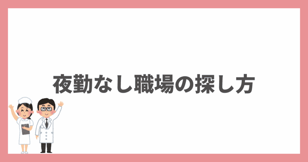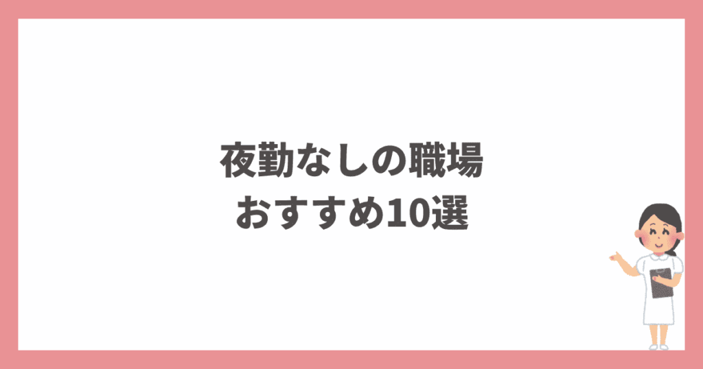本記事では、看護師でも夜勤なしの職場について解説しました。